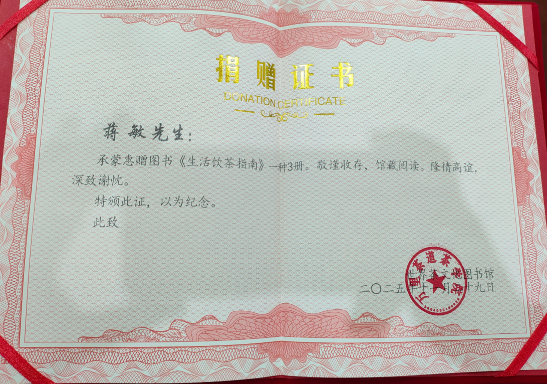 本次论坛在承办单位之一的九江职业大学文化旅游学院、万里茶道茶学院举办。万里茶道茶学院建有世界茶文化图书馆。章传政代表《生活饮茶指南:从喝茶小白到懂茶高手》著作的编写团队,向九江职业大学万里茶道茶学院世界茶文化图书馆捐赠了新书。