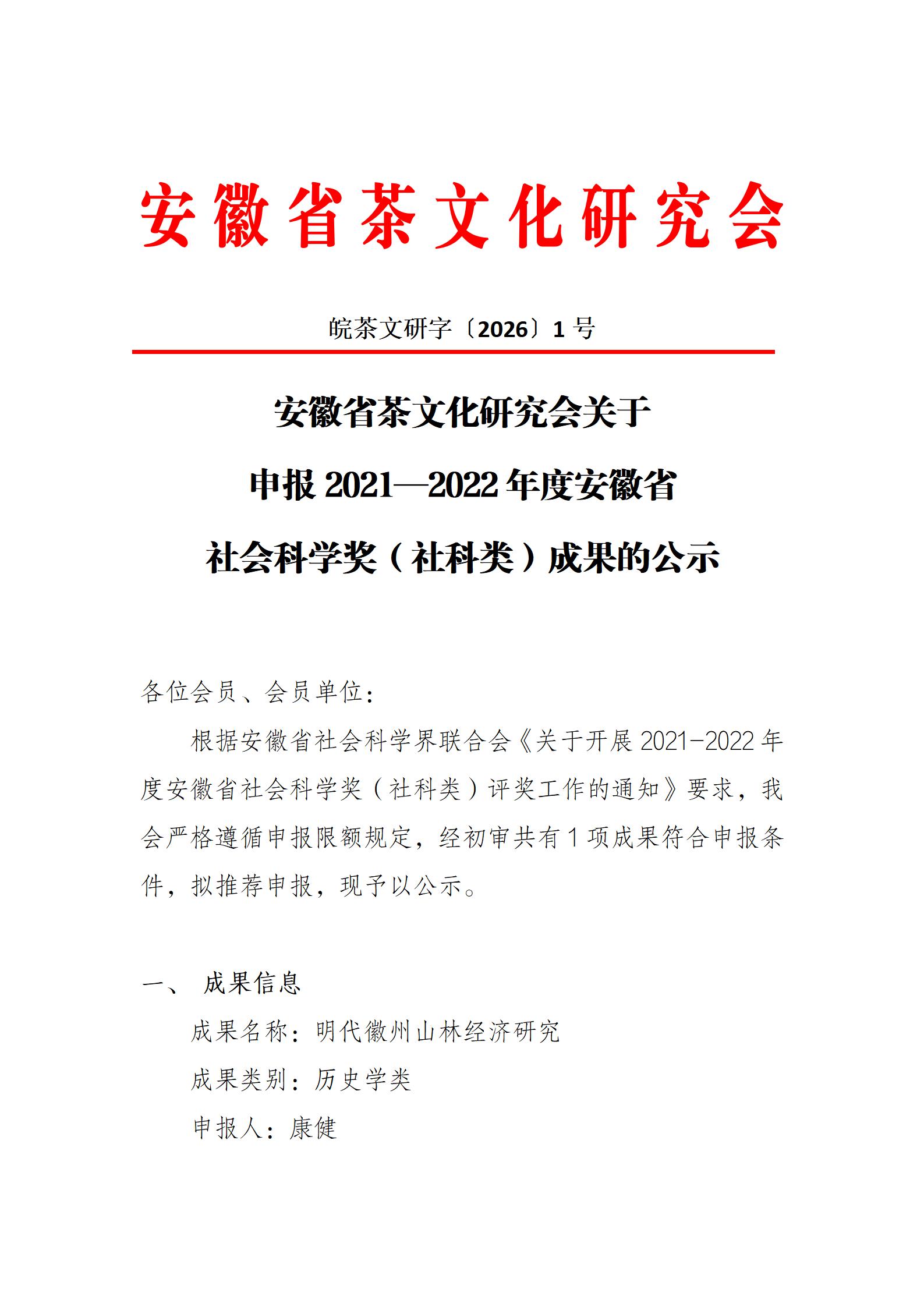 安徽省茶文化研究会关于申报2021—2022年度安徽省社会科学奖(社科类)成果的公示