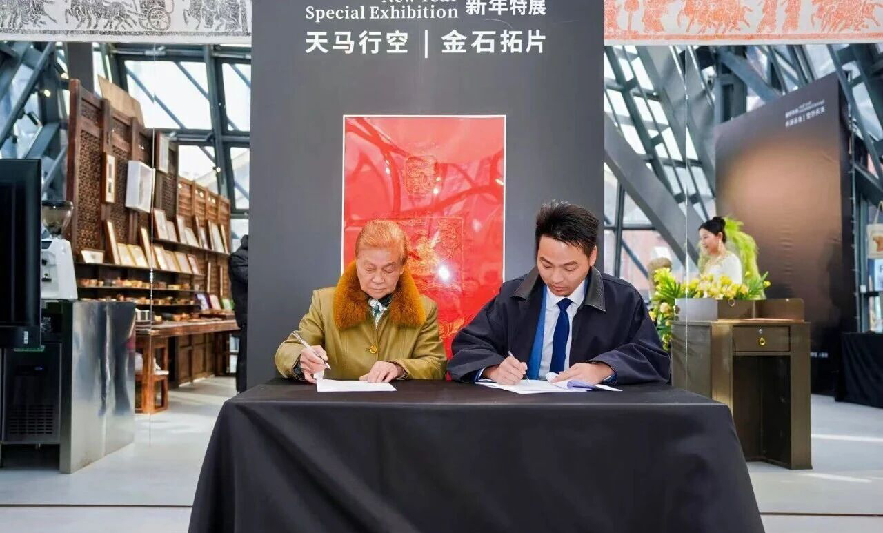 仪式现场,省级非遗徽派插花艺术传承人、省茶文化研究会传统插花专业委员会主任付玉兰教授与FirstSight一见品牌创始人、青年艺术家柯春润共同为传承基地揭牌,更以签约形式敲定合作。