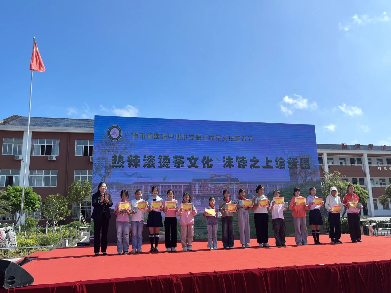 广德市杨滩镇中心小学秉持“以茶育人”的理念,坚持文化引领、五育并举,茶文化内涵不断丰富,已逐步形成独特的办学特色。通过丰富的茶韵校本课程促进学生的综合素质,将始终传承茶文化精神,为党育人、为国育才,培养全面发展的中华“小茶人”。